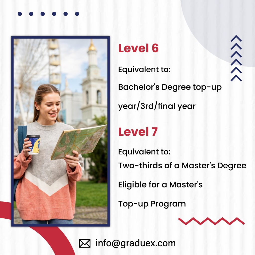 Level 6 courses, equivalent to a degree's third year, help achieve a recognized degree faster. The Qualifi Level 6 course covers strategic management, leadership, and more.